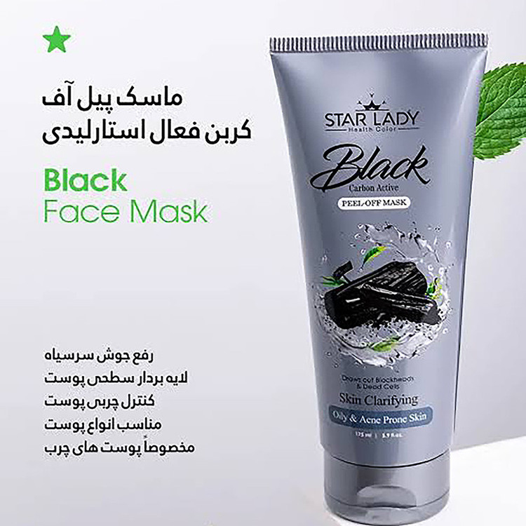 ماسک صورت استارلیدی مدل ضد جوش ذغال فعال و شیباتر حجم 175 میلی لیتر