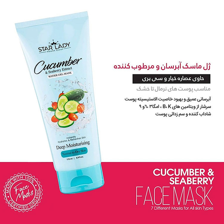 ماسک صورت استارلیدی مدل آبرسان خیار و ذغال اخته حجم 175 میلی لیتر