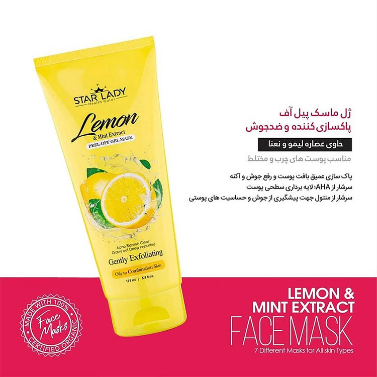 ژل ماسک صورت استارلیدی مدل ضد جوش لیمو و نعنا حجم 175 میلی لیتر